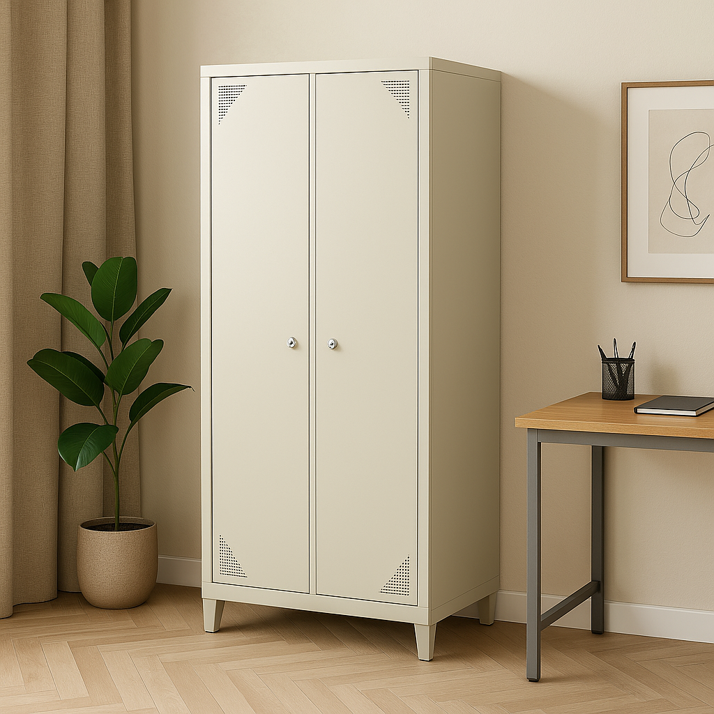 Locker Metálico Multiuso de 2 Puertas con Ganchos y Ventilación, ideal para uso en oficinas, áreas de limpieza, bodegas, clínicas o empresas que requieren almacenamiento organizado y seguro.
