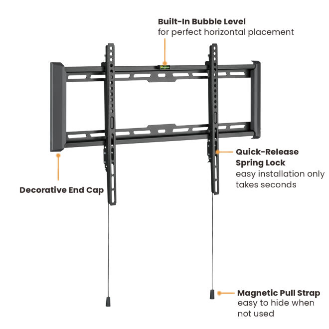 ●Cerraduras de Resorte Automático con Cables de Liberación Rápida: permiten retirar TV de forma rápida y sencilla