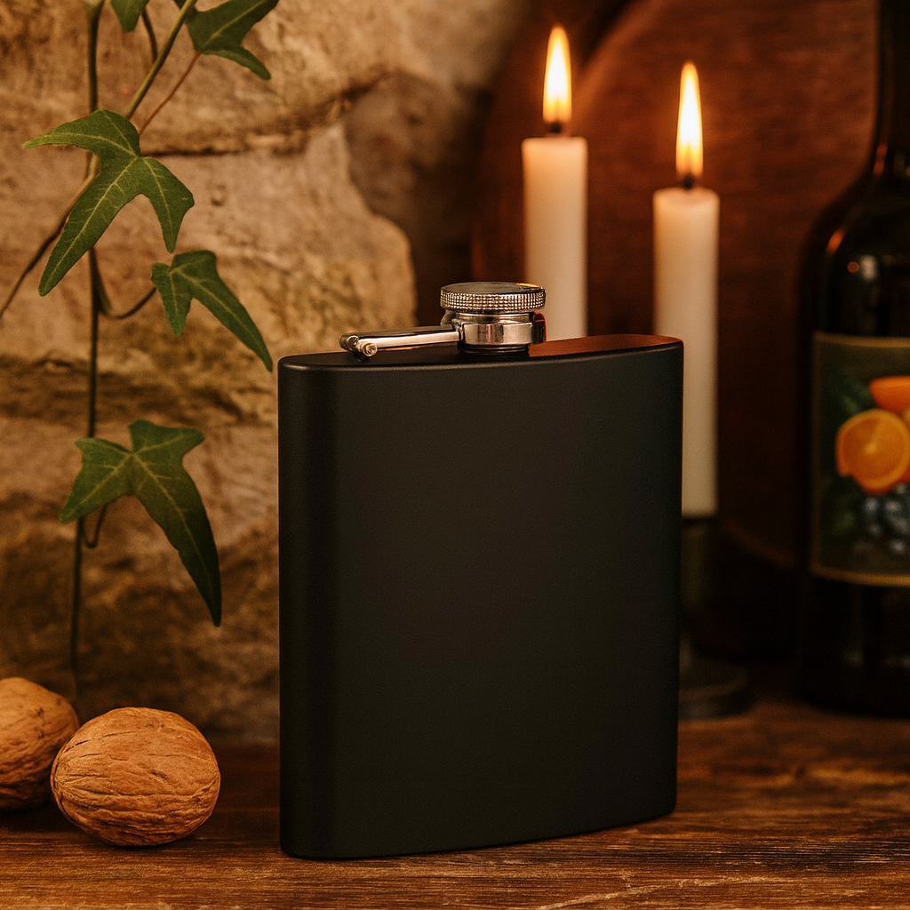 Licorera de bolsillo con diseño discreto y compacto, ideal para llevar en viajes, reuniones o eventos sociales. Su tapa de rosca asegura un cierre hermético para evitar derrames. Un detalle útil y con estilo, perfecto para quienes aprecian un buen brindis.