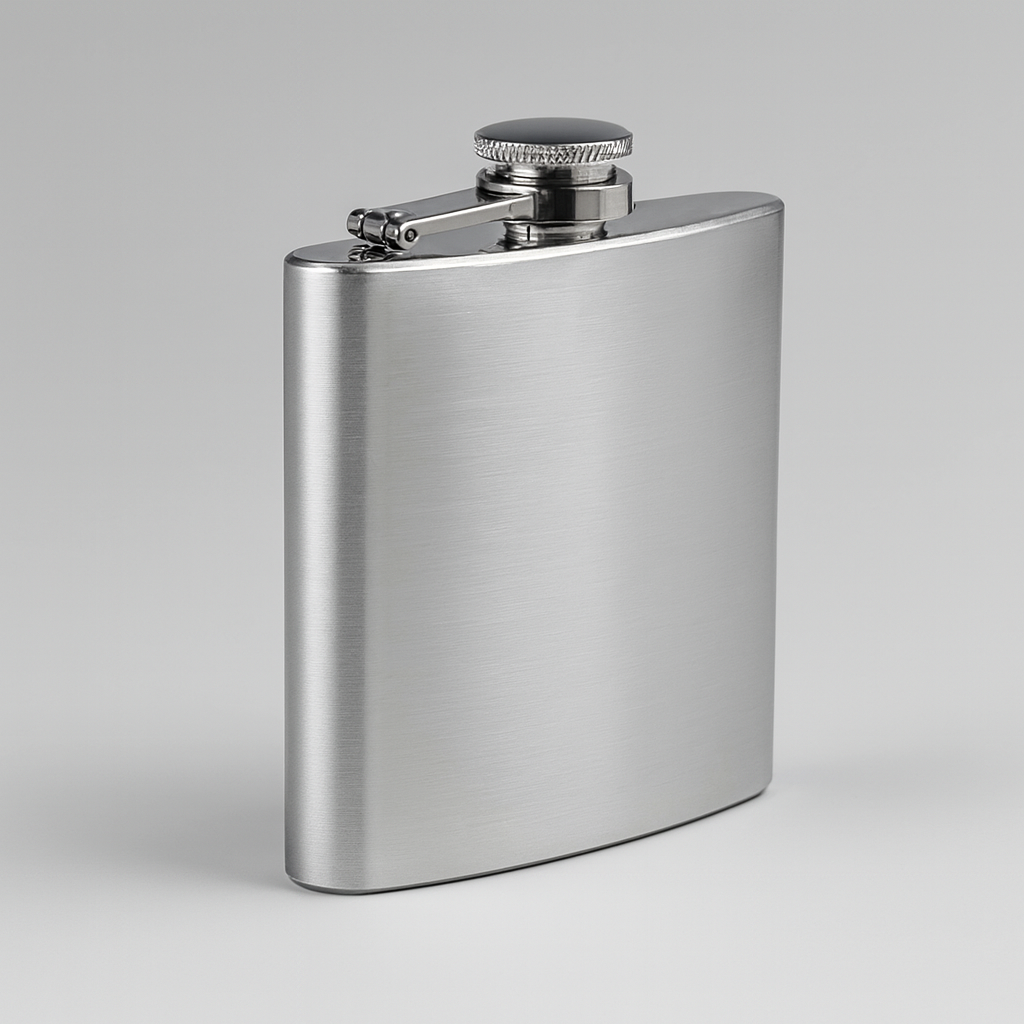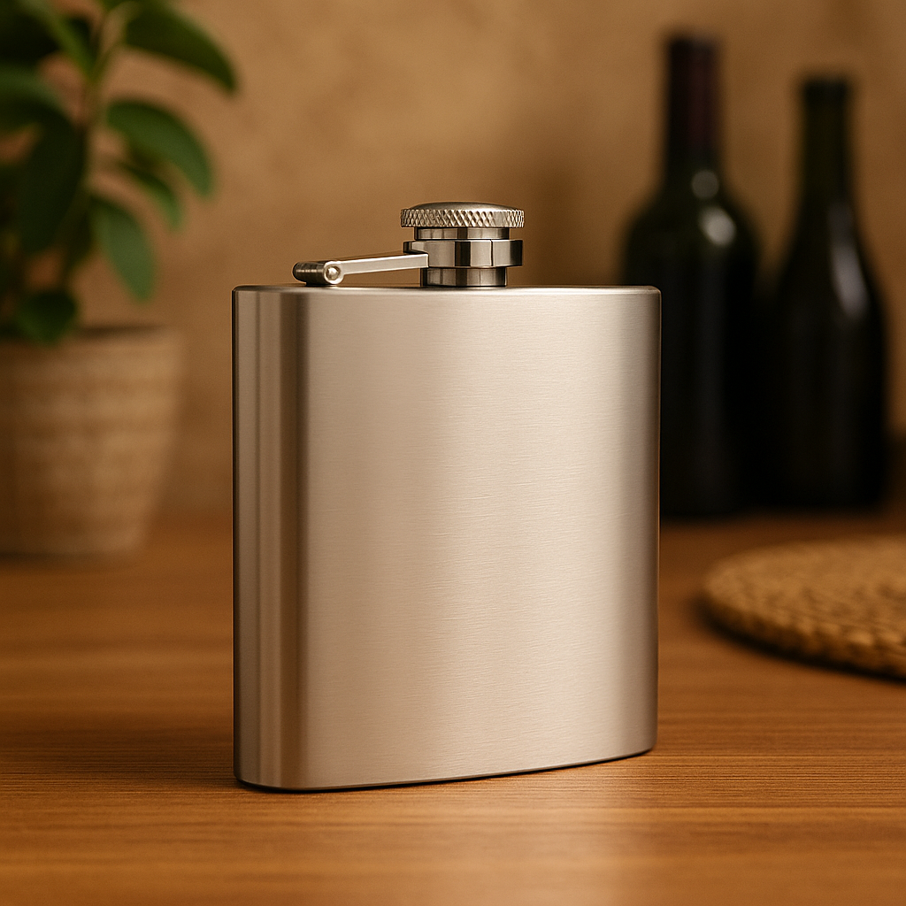 Licorera de bolsillo con diseño discreto y compacto, ideal para llevar en viajes, reuniones o eventos sociales. Su tapa de rosca asegura un cierre hermético para evitar derrames. Un detalle útil y con estilo, perfecto para quienes aprecian un buen brindis.