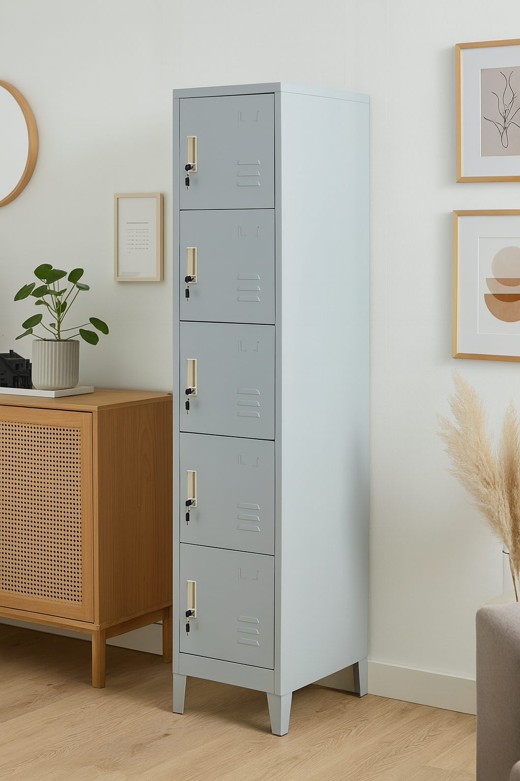 Una solución robusta, funcional y moderna para la organización y resguardo de pertenencias personales en espacios profesionales, escolares o deportivos. Este modelo de 5 compartimentos verticales independientes ofrece un equilibrio ideal entre seguridad, ventilación y aprovechamiento de espacio.