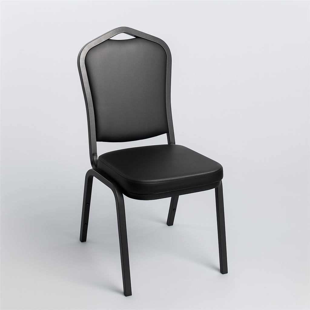 Silla de Espera o Banquete Tapizada en Vinil con Estructura Metálica, ideal para oficinas, salas de espera, comedores, salones de eventos, restaurantes o espacios institucionales. Su diseño compacto y resistente en color negro la convierte en una opción funcional, fácil de limpiar y duradera.
