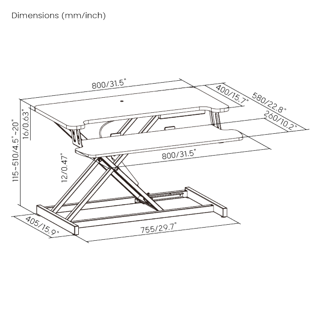| Dimensiones: | 800x580x115~510mm (31.5"x22.8"x4.5"~20.1") |